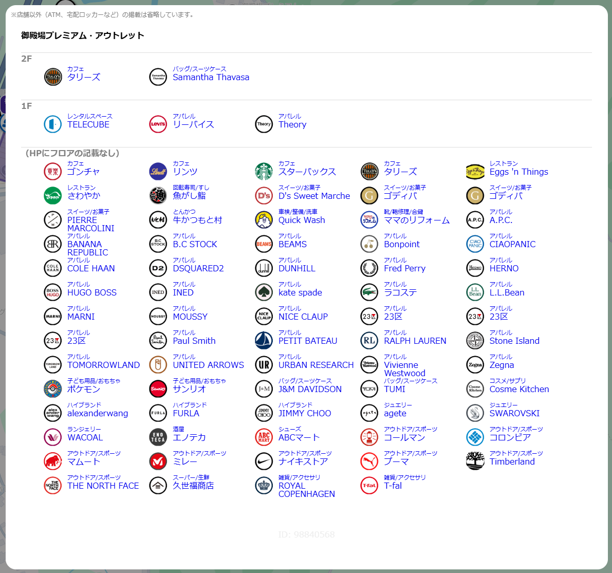 御殿場プレミアムアウトレットの店舗一覧