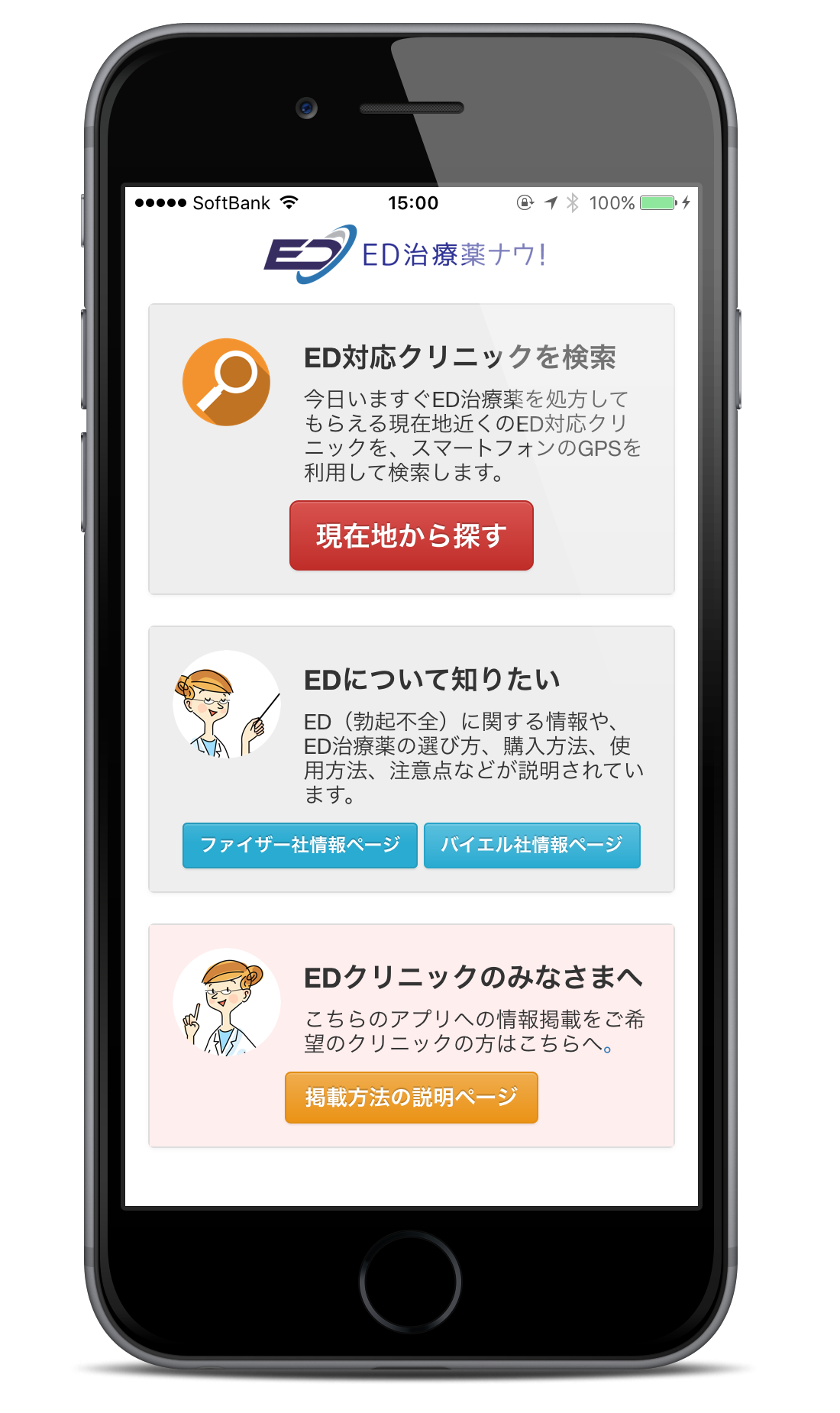 ED治療薬を扱う近くのクリニックを簡単検索! 無料アプリ「ED治療薬ナウ!」公開